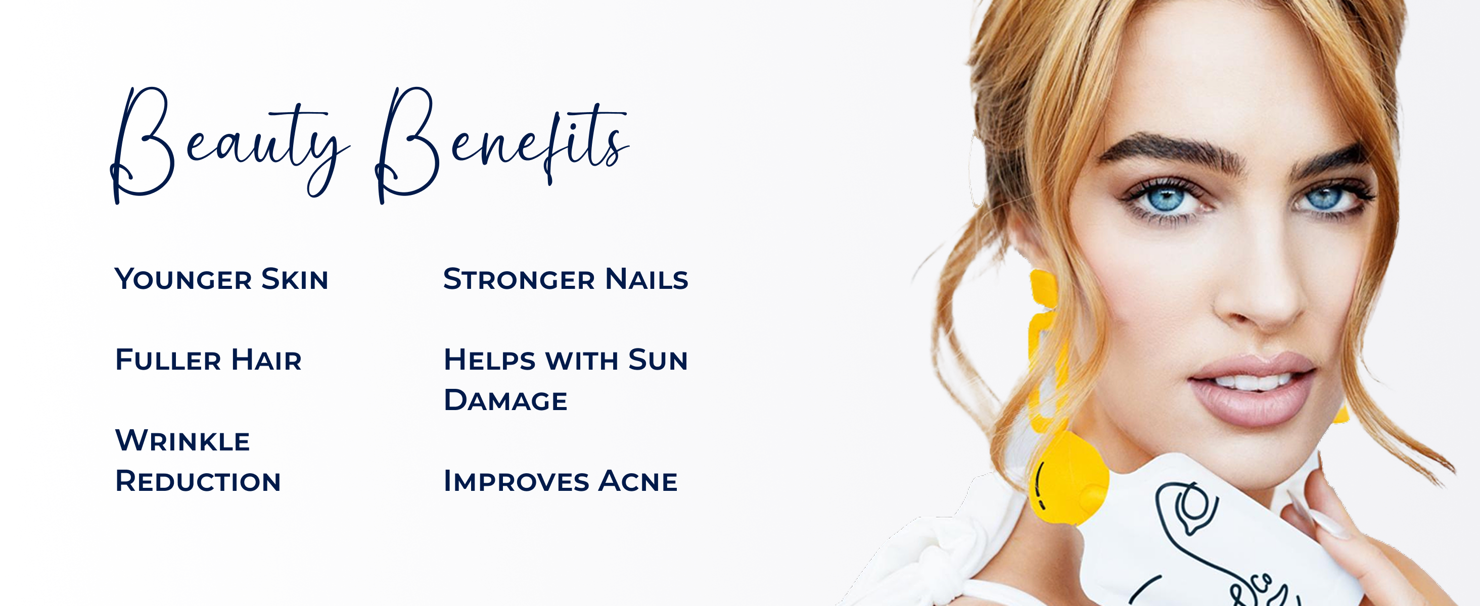 Collagen is the most abundant protein in the body. Our cells literally swim in collagen. It helps you to maintain elasticity in your skin, connective tissues, and arteries. From the age of 20, our natural collagen production declines rapidly. By the age of 40, we produce almost none, and the existing collagen keeps breaking down. The most visible signs of this process are wrinkles, less flexibility, or joint pain. Supplementing collagen in our diet can help replenish this precious protein.