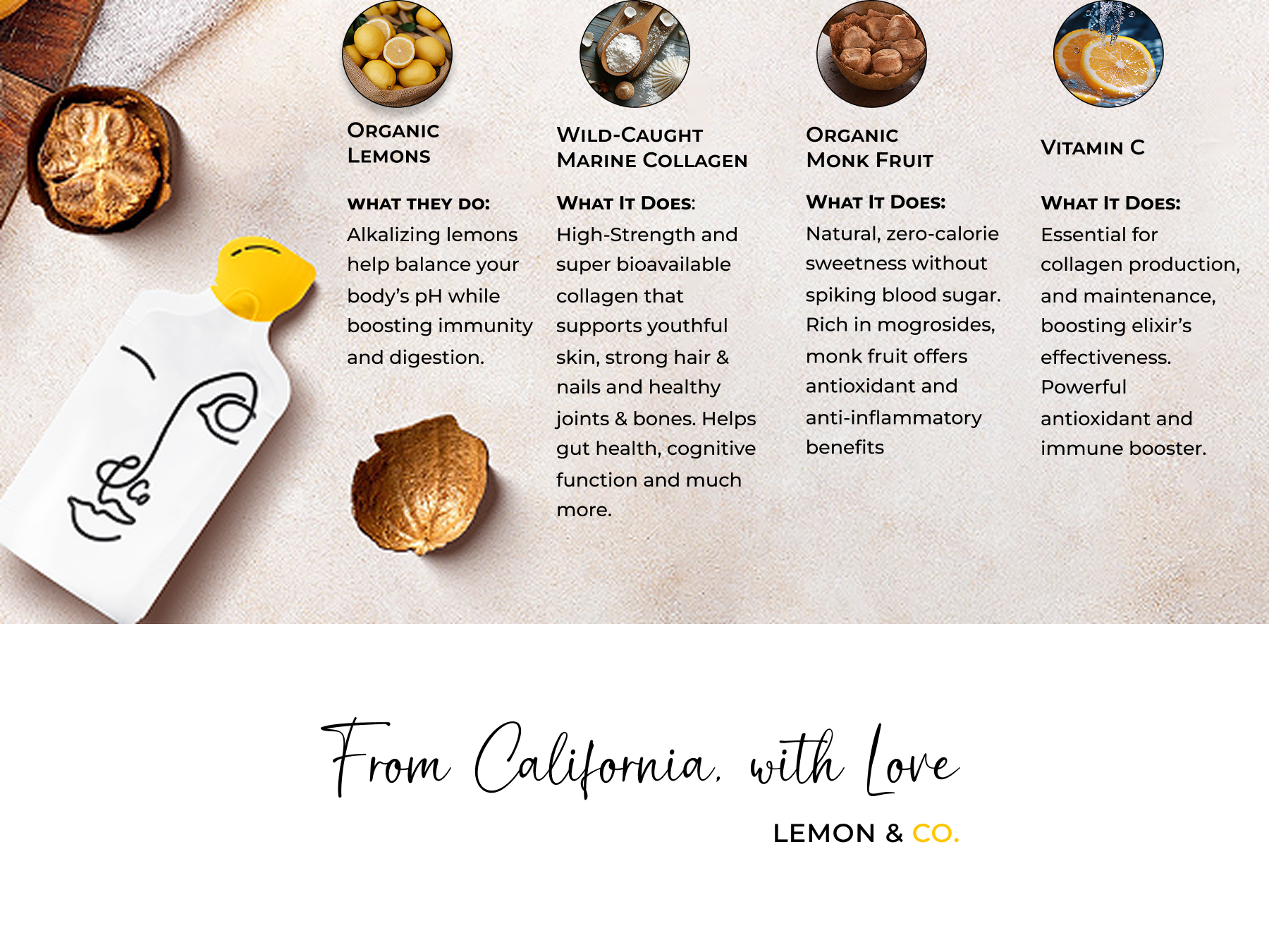 How to use: Mix one elixir sachet with water and enjoy this refreshing collagen lemon water! Drink one or two per day for 8-12 weeks for optimal results.