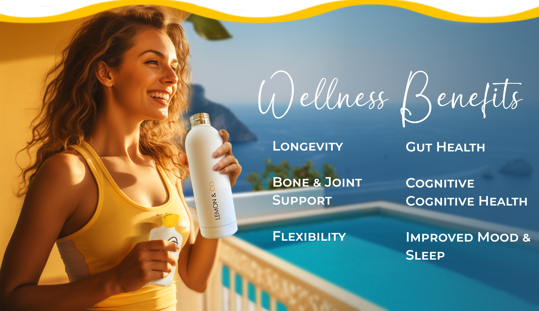 Lemon Infused Collagen Elixir is a ready-to mix collagen lemon water. It is a convenient, liquid collagen supplement that transforms your glass of water into a daily wellness boost bursting with lemon flavor.