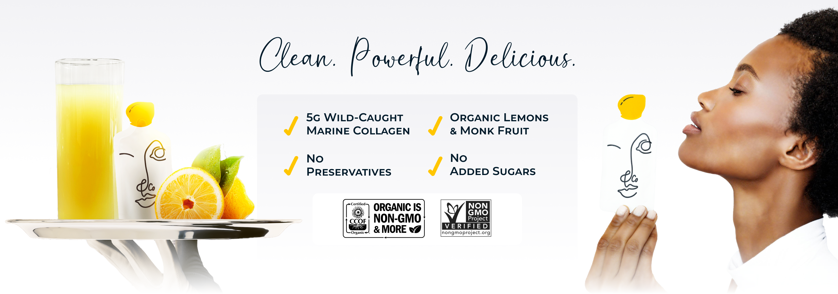 Our collagen is sourced from wild-caught, sustainably harvested marine fish from the pristine waters of the North Atlantic Ocean. All additional ingredients, including organic lemon juice, organic monk fruit, and vitamin C, are carefully selected from certified organic and non-GMO verified sources to ensure the highest quality and purity. There is no added sugar, preservatives or artificial additives.